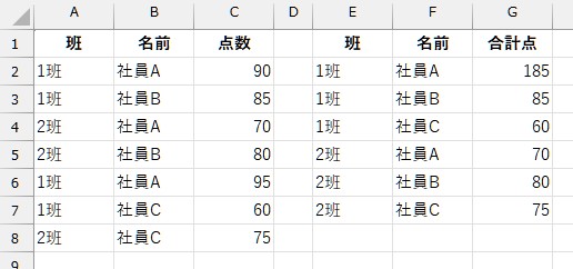' --- 結果を E列:班 / F列:名前 / G列:合計点 に出力 ---